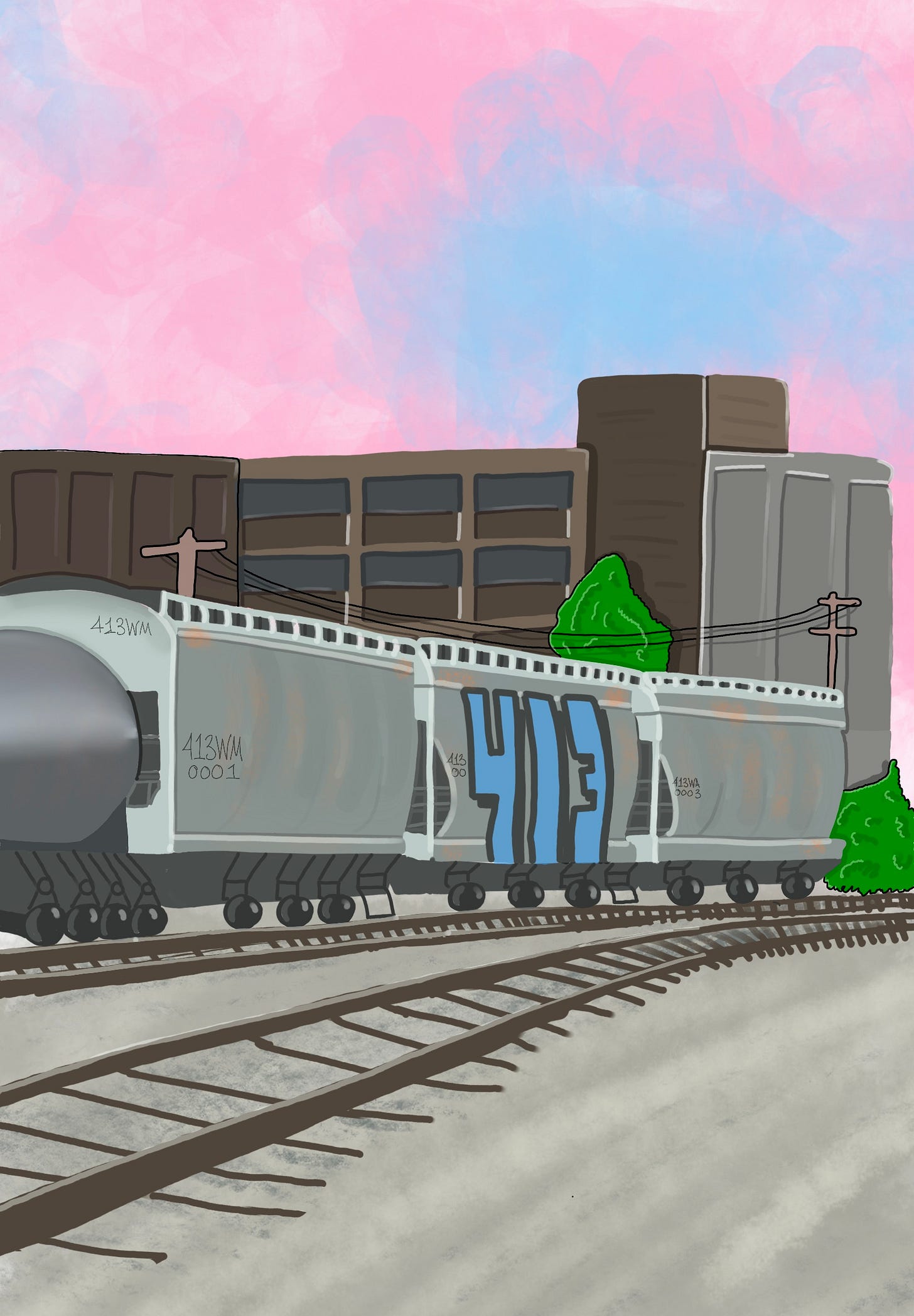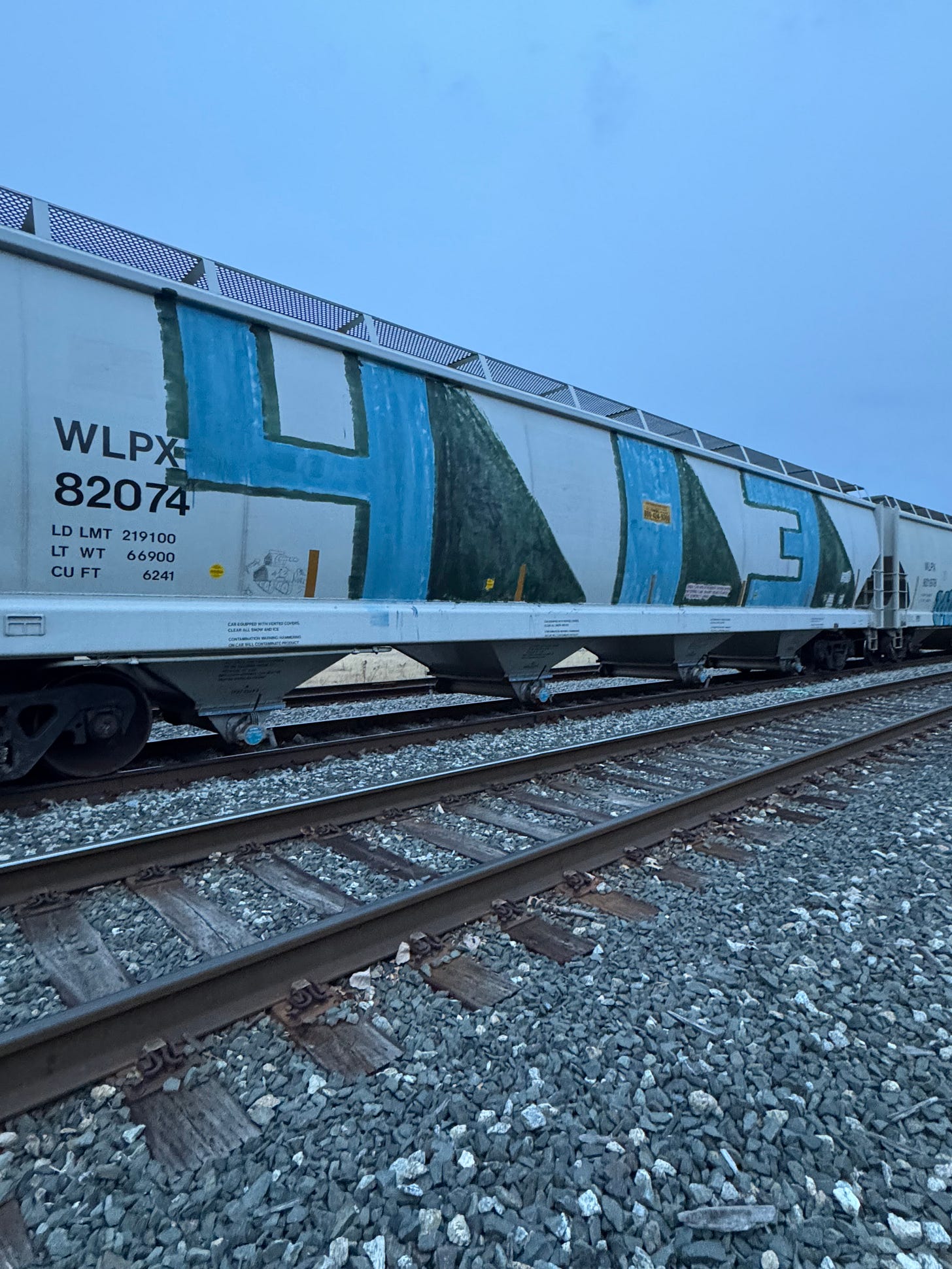 One night, I was laying awake thinking to myself how could I bring the 413 to the big stage on trains & showcase an amazing area! I didn’t know it at first, but this would re-spark my passion to hunt trains & paint again. I began painting 413 in the biggest fashion I could, taking over the majority of 65 foot hopper train cars with just 3 numbers. Looking at pictures don’t do the size of the trains justice. Their enormous & ridged, with grooves along the body to support dexterity. Lugging around a duffle bag full up 2 1 gallon house paint buckets, a roller pole with an extension, 3 roller covers, gloves, & sometimes a smaller quarter bucket of an extra color paint. Walking up & down the railroad tracks, stealthy moving from my parking space to the area without being noticed. It adds to the thrill & excitement of the whole thing. The only aspect that I dislike is the length of time it takes to bring a dream into reality.