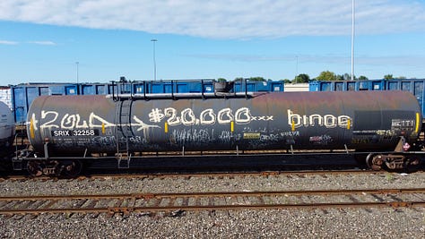 Almost 3 hours later, I had finished my favorite whole car! I added a 3D that made it look like the numbers were popping off from the smaller corner of the hopper. I loved it. I had even brought a couple of Sam Adams Winter Lagers with me because I knew this one would deserve a celebration. As I was finishing & sipping my beer, I started to get really cold & I thought I might be getting sick. I spent about 25 - 30 minutes walking around covering the paint splattered ground. I realized as I was taking pictures & videos at the very end, why I was so cold. It had been snowing & I hadn’t even noticed. My beer had ice forming on the side of the bottle it was so cold. Truly a memorable experience.